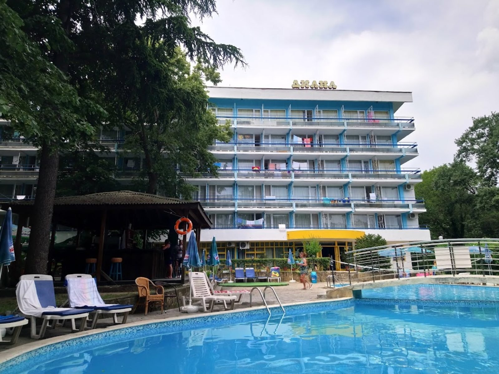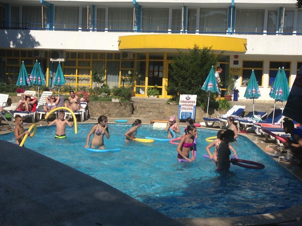 Хотел „ДИАНА**” се намира в КК „Златни Пясъци”, на 300м. от плажа,сред много зеленина. Комплексът разполага с: 147 двойни стаи обурудвани с TV , интернет(WiFi). Всяка стая има самостоятелен санитарен възел и тераса.Ресторант със 150 места на закрито и тераса към него. Голям басейн с бар.Зона за анимация. Просторен паркинг за автобуси и автомобили. Компютърна зала, електронни игри, интернет. Храненето е в ресторанта на хотела - закуска, обяд и вечеря се извършват на шведска маса. Сок, вода и топли напитки се предлагат без ограничения по време на храненията.