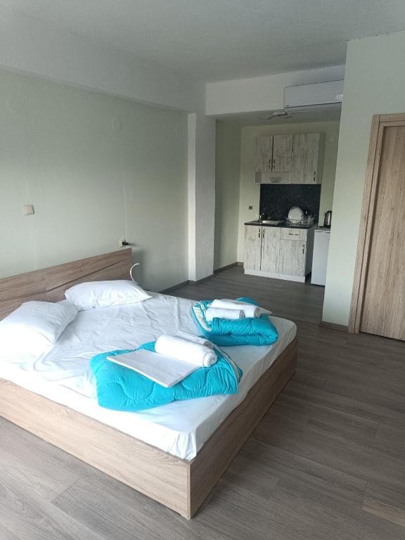 В комплекса: Голям външен басейн с чадъри и шезлонги, денонощна охрана и сигурност.